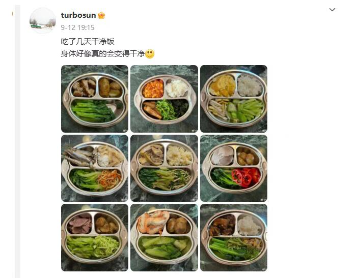 早在9月初孙俪就有在晒干净饭了,当时她配文写道:吃了几天干净饭,身体好像真的会变得干净。